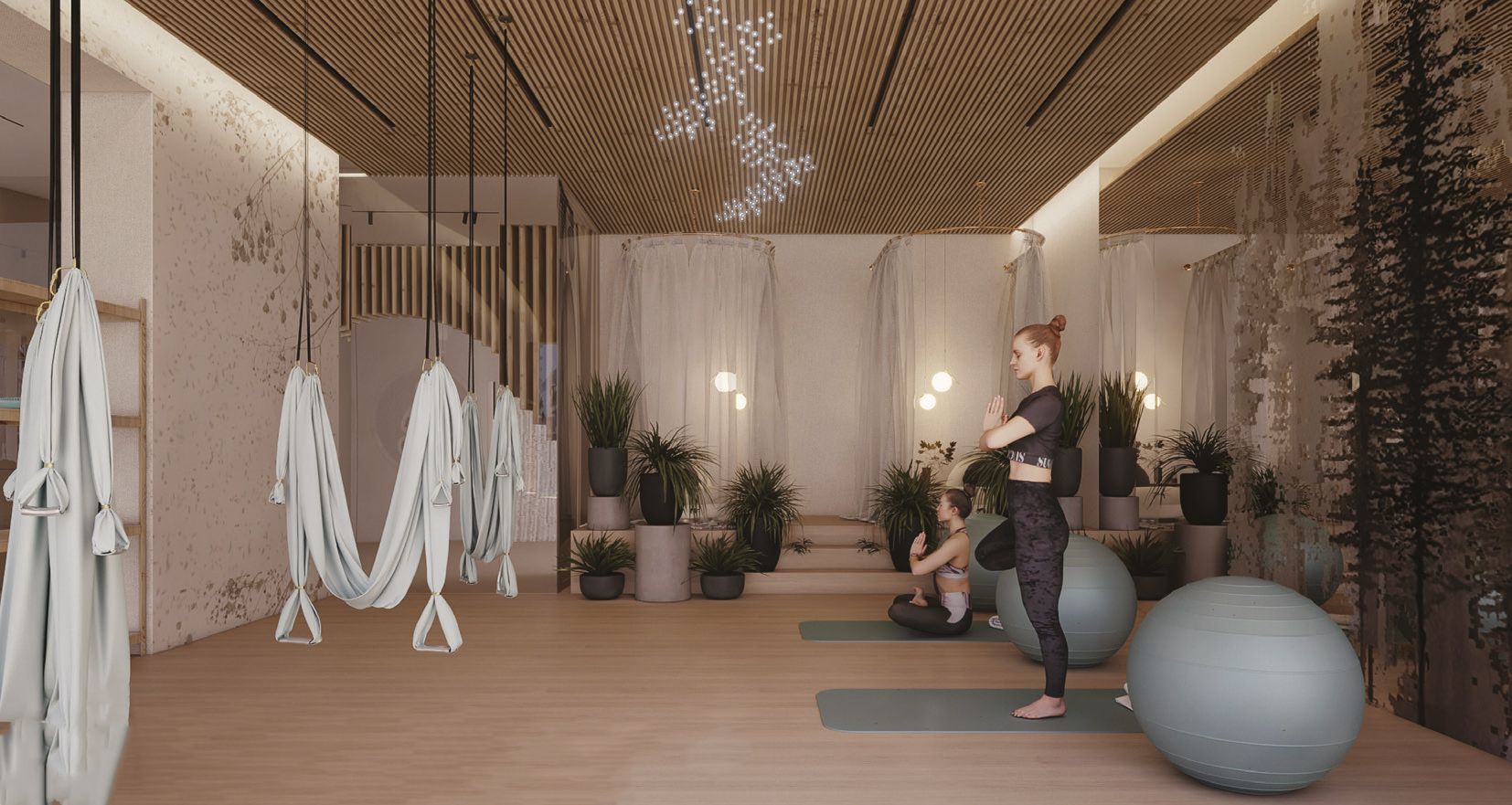 - тренажерный зал с трехъярусным потолком;